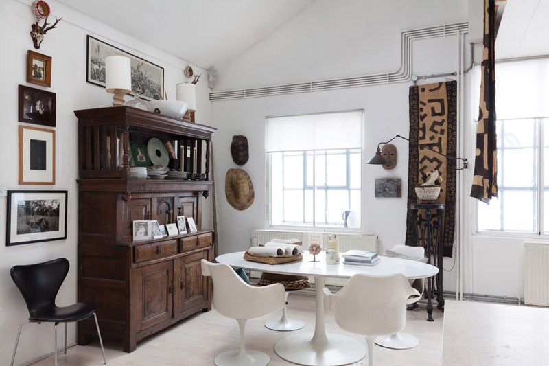 Не бойтесь сочетать несочетаемое. Стол в стиле модерн середины века отлично смотрится с современными стульями. Винтажный ковер может лежать в ультрасовременной гостиной.